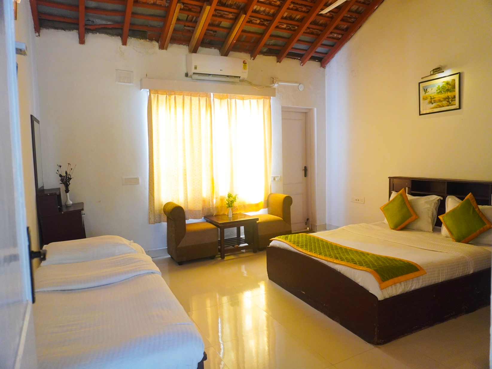 Savoy Castle- 16 bedded accommodation that offers the perfect blend of space, comfort and charm. Designed for families and groups seeking a relaxed getaway, the room features generously sized interiors, cozy bedding and thoughtful amenities that make everyone feel at home. Enjoy a serene farmstay experience with room to unwind, connect, and create memories together.